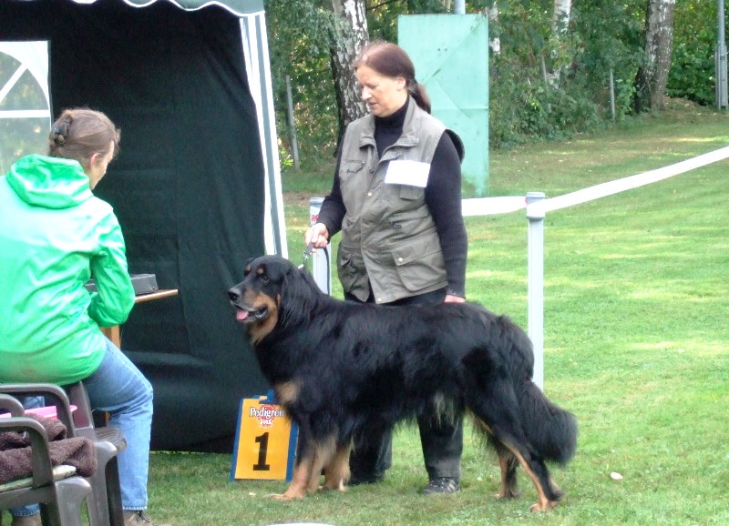 3 1/2 Jahre alter, harmonisch aufgebauter Sm-Rüde vom derben Typ. Maskuliner Kopf, mit etwas weiter hinten angesetzten, korrekt getragenen Ohren. Braune Augen, sattes Nasen- und Lefzenpigment, komplette Schere. Vorzügliche obere und untere Linie, parallel gestellte Front mit leicht ausdrehenden Vorderpfoten, die etwas knapper gewinkelt ist. Korrekte Hinterhandwinkelungen. Korrekt angesetzte und getragene Rute. Etwas verspielte Bewegungsabläufe mit ausreichend parallel geführter Hinterhand und paddelnd gesetzter Vorhand. Üppiges gepflegtes Haarkleid. Korrekt angelegte Marken, Hoden vorhanden; sehr freundliches Wesen.