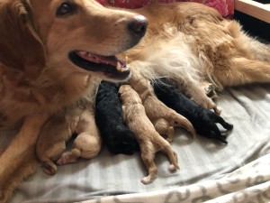 Am 28.05.2018 haben die Welpen des H-Wurfs vom Pferdebach das Licht der Welt erblickt. 7 Welpen wurden in nur 2 1/2 Stunden problemlos von Maike vom Büssemfeld geboren. 3 blonde Rüden, 2 schwarzmarkene und 2 blonde Hündinnen machen sich auf, die Abenteuer des Lebens zu erfahren. Die Geburtsgewichte lagen zwischen 360 g und 600 g. …