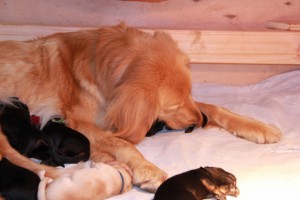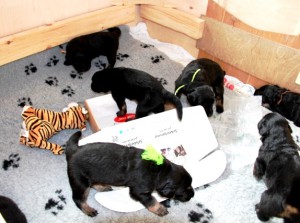 In der Nacht vom 28.05. zum 29.05.2014 erblickte der A-Wurf Cleohov’s (Dänemark) das Licht der Welt. Weitere 9 Nachkommen von Leo machen sich auf, die Welt zu erobern: 6 Rüden (1 x blond, 5 x schwarzmarken) und 3 Hündinnen (alle schwarzmarken) mit Geburtsgewichten zwischen 408-607 g. Erste Fotos im Alter von 2-3 Tagen: Nach …