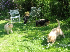 Am 17.05.2012 machte ich mit Leo und Chico einen Ausflug zu den nun 5 Wochen und 5 Tage alten B-lies vom Pohlsee. Die enorme Entwicklung von Welpen in wenigen Tagen ist immer wieder faszinierend. Erst vor ca. 3 1/2 Wochen die Augen geöffnet, vor ca. 2 1/2 Wochen die Ohren tollten die Welpen nun selbstsicher …
