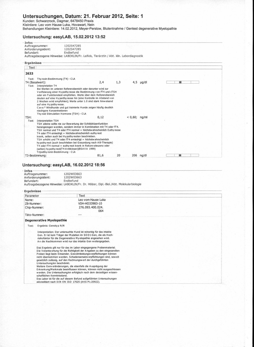 Alle untersuchten Schilddrüsenwerte sind im Normbereich.