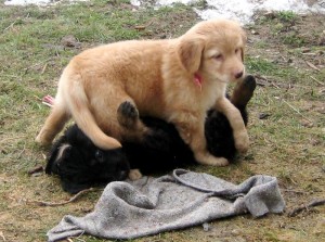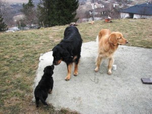 Leo und Angie beobachten die Welpen am 02.04.2013