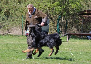Dann aber präsentierte sich Bonito für seine erste Ausstellung mit mir (in der Slowakei war er 1 x in der Jugendklasse mit dem Ergebnis “vorzüglich 2” vorgestellt worden) so unerwartet gut – lediglich sein Tempo musste ich etwas bremsen – dass ich mich plötzlich mit ihm im Stechen der 5 mit “vorzüglich” bewerteten Rüden von insgesamt 8 Teilnehmern in der Offenen Klasse wiederfand.