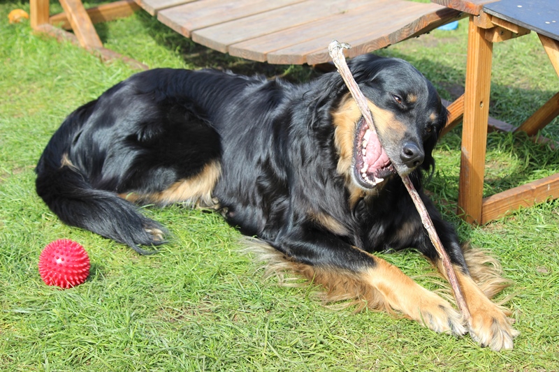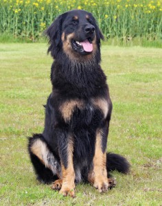 Im Mai erhielt ich die Nachricht, dass Bonitos HD-Befund mit “B2” bewertet worden war, was aufgrund der Befundung durch den seit Januar 2015 neuen Gutachter des RZVs “zur Zucht zugelassen” bedeutet. So entschloss ich mich, Bonito im Hinblick auf eine evtl. Zuchtzulassung erstmals nach seiner Deutschland – “Einreise” auf einer Ausstellung vorzustellen. Ohne besondere Erwartung meldete ich daher Bonito für die Offene Klasse der CAC Babenhausen am 07.06.2015, war jedoch überzeugt, dass er auch dann, wenn er mit seinem lebhaften Temperament durch den den Ring mehr hopsen als laufen würde, zumindest mit “sehr gut” würde bewertet werden………….