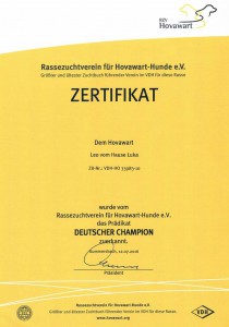 Eine Woche nach der CAC Babenhausen stellte ich Bonito in der Offenen Klasse auf der RZV-Clubsiegerschau in Schwarmstedt der österreichischen Zuchtrichterin G. Stastny vor. In Bonitos Klasse starteten 18 Teilnehmer, von denen 11 mit “vorzüglich” bewertete Rüden ins Stechen kamen. Ein Rüde nach dem anderen wurde aus dem Ring geschickt. Natürlich habe ich mich sehr darüber gefreut, dass Bonito sich auch in dieser sehr großen Gruppe so gut präsentierte, dass er mit seinen gerade 2 1/4 Jahren (und trotz der schlechten Haltungsbedingungen bis Oktober 2014) erst als letzter Rüde vor den 4 Platzierten den Ring verlassen musste.
