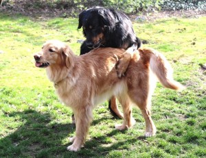 Ussi wurde von Leo nach 3-tägigem “Vorspiel” am 26.03. und 27.03.2014 gedeckt. Aufgrund des Untersuchungsbefundes einer Fachtierärztin für Gynäkologie am 25.03.14 sind beide Deckakte im “idealen” Deckzeitraum vom 26.03.-28.03.14 erfolgt, so dass Züchterin und ich zuversichtlich auf Welpen hoffen können.