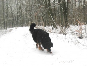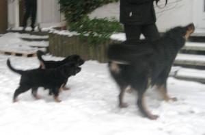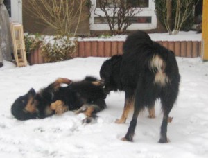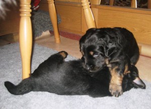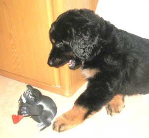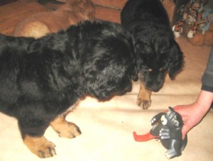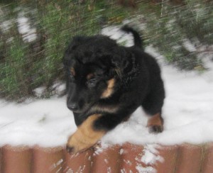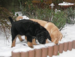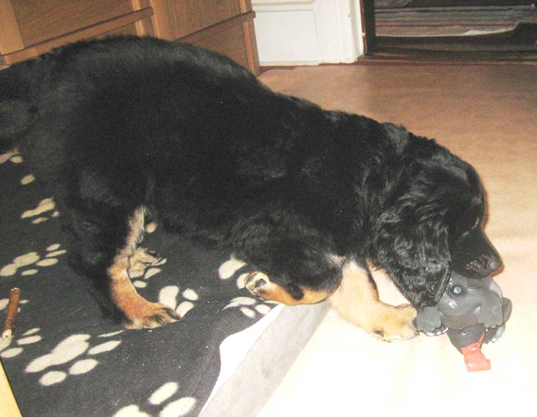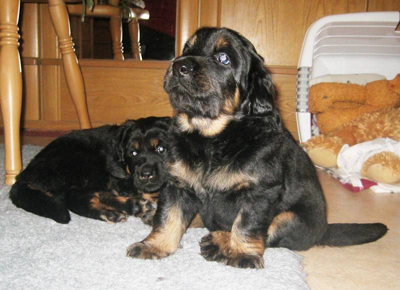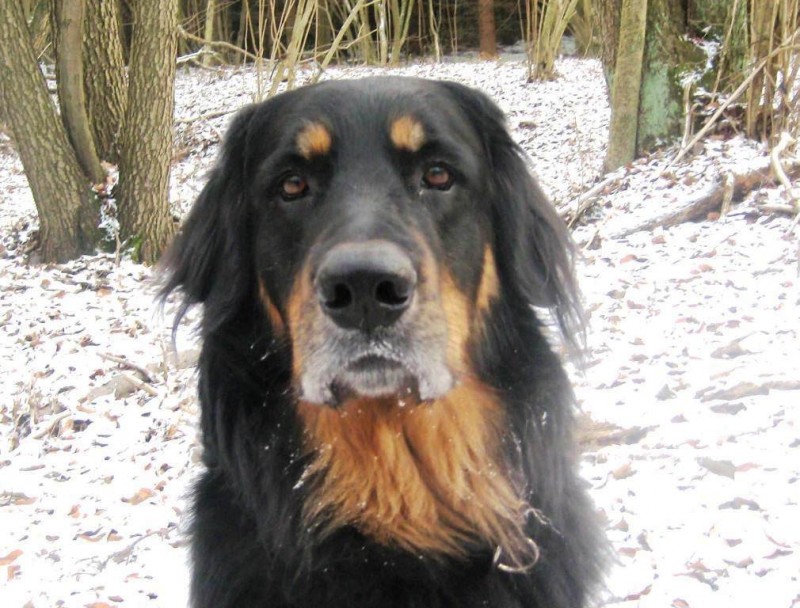 Schon nach wenigen Tagen war Archie von den Erstbesitzern an die Züchterin zurückgegeben worden, da er diesen zu lebhaft war, sie sich mit der Aufzucht eines Welpen überfordert fühlten. Nun hat er eine tolle neue Familie gefunden, in der Kinder, Pferde, Katzen und 2 weitere Hovawarte leben, es also kaum ein Problem mit seiner Lebhaftigkeit geben sollte.